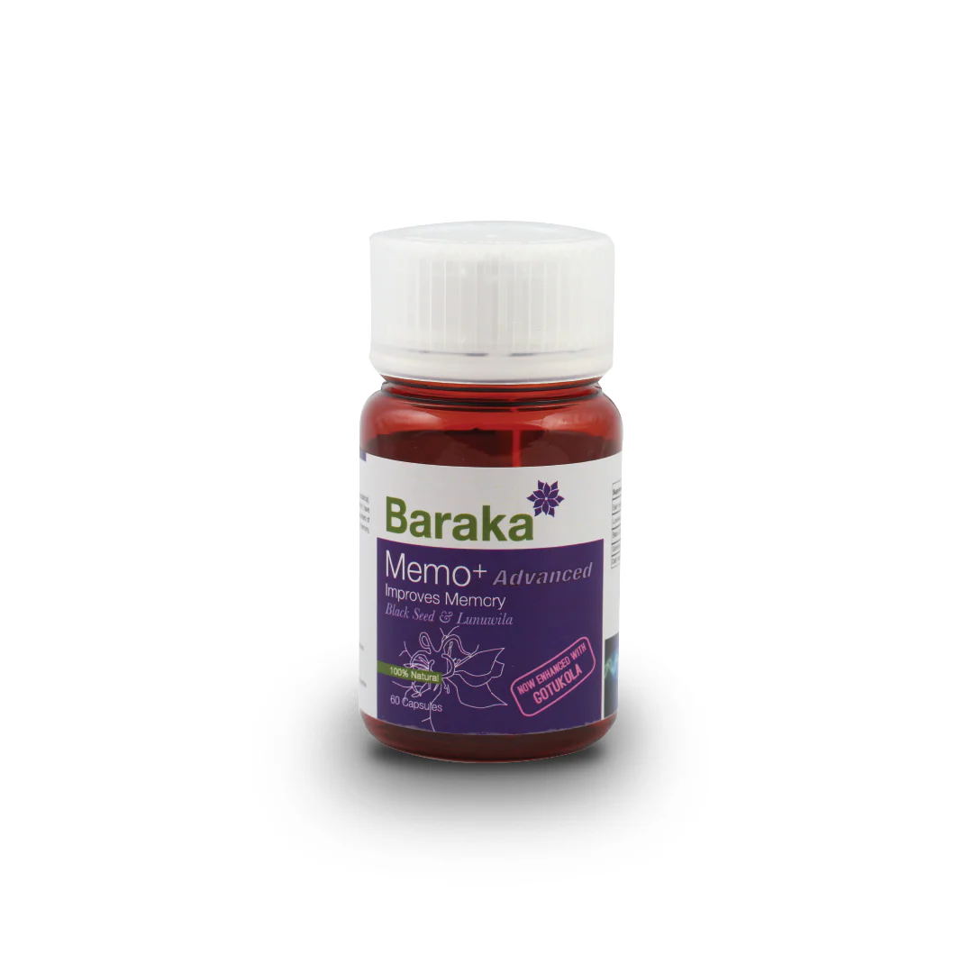 Baraka memo plus je tvrda želatinska kapsula proizvedena od praha Lunuwile ( Bacopa monneira ) i praha crnog kima, biljaka koje se koriste za kognitivno poboljšanje i potporu kod poremećaja intelektualnog razvoja.